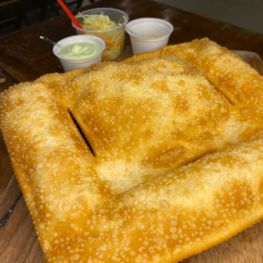 MASSA FRITA COM CARNE MOIDA E QUEIJO MUSSARELA