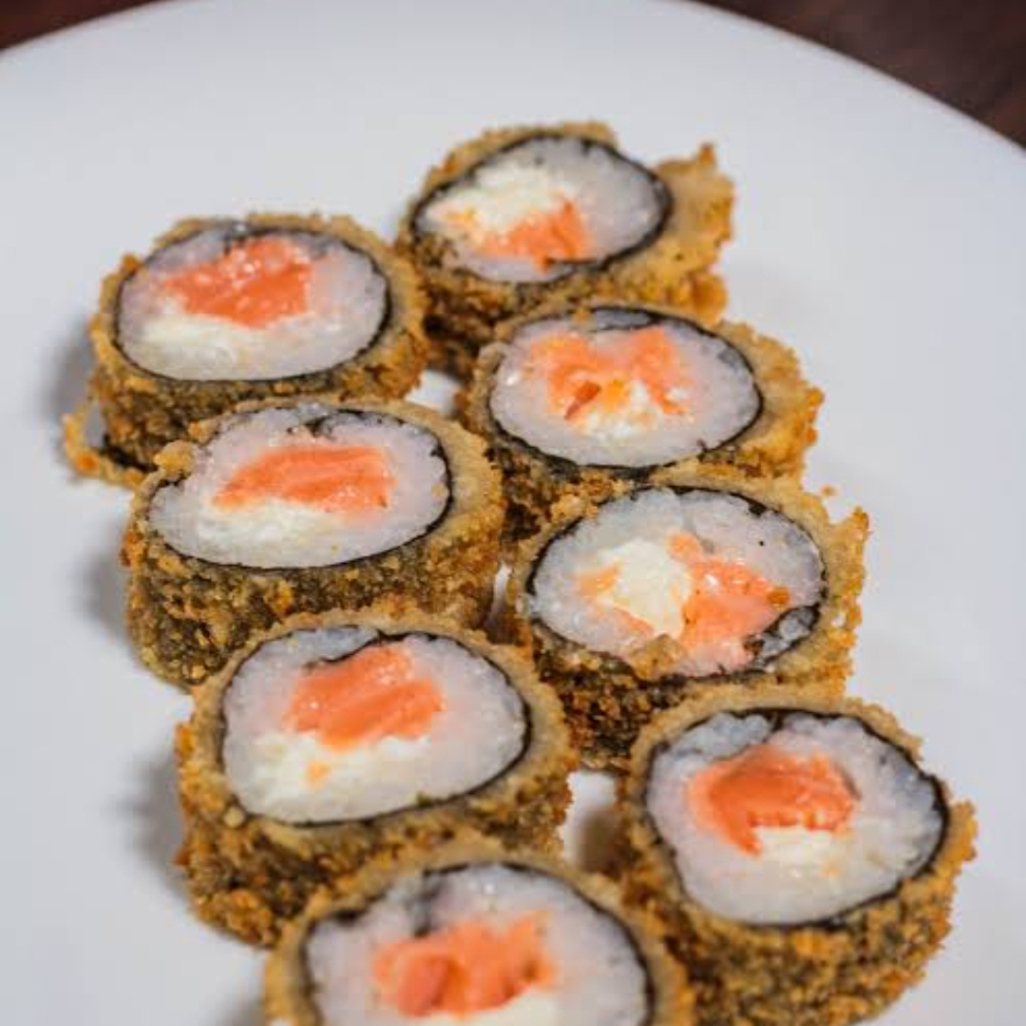 Temaki misto + salmão empanado e frito finalizado com bastante cream cheese