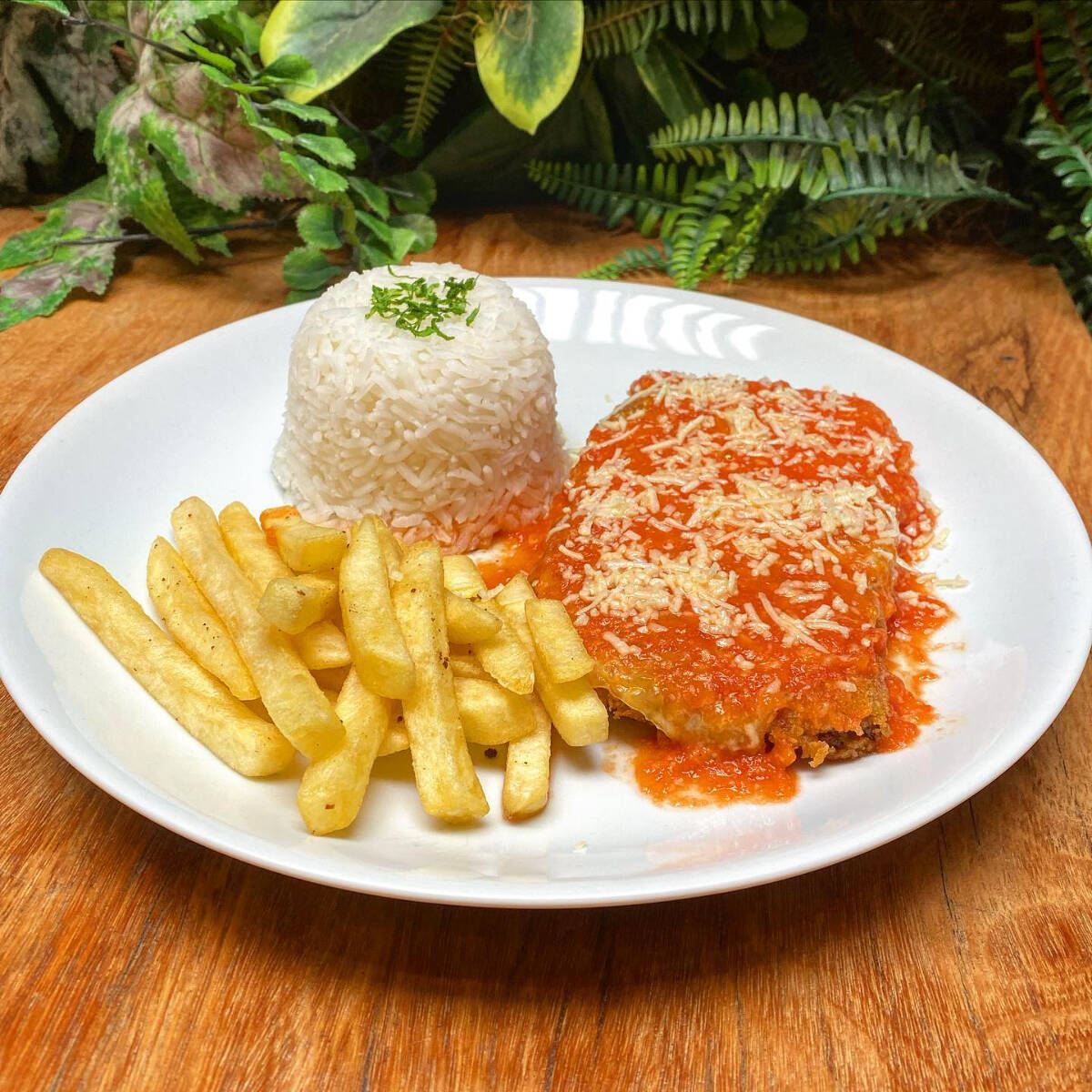 Arroz Soltinho, Parmegiana de Carne e Batata Frita