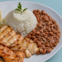 Arroz Soltinho, Feijão de Caldo, File de Peito de Frango Grelhado e Salada