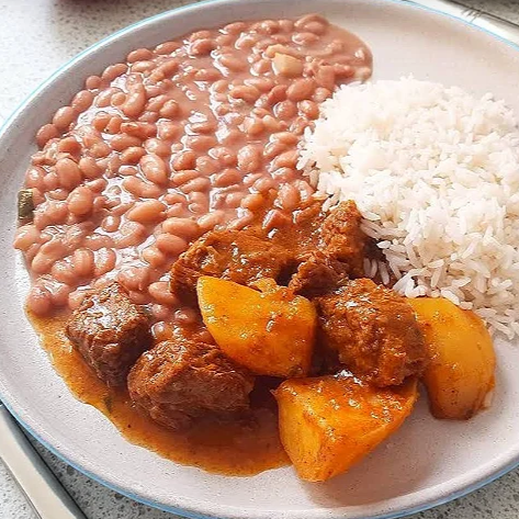 Arroz Soltinho, Feijão de Caldo, Carne de Panela com Batata e Salada