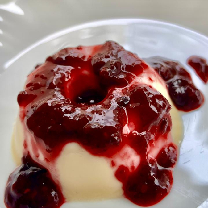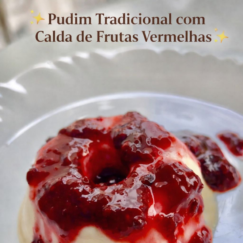 Nosso pudim de leite condensado tem textura macia e sabor caseiro, finalizado com uma deliciosa calda de frutas vermelhas que traz o equilíbrio perfeito entre o doce e o levemente azedinho.