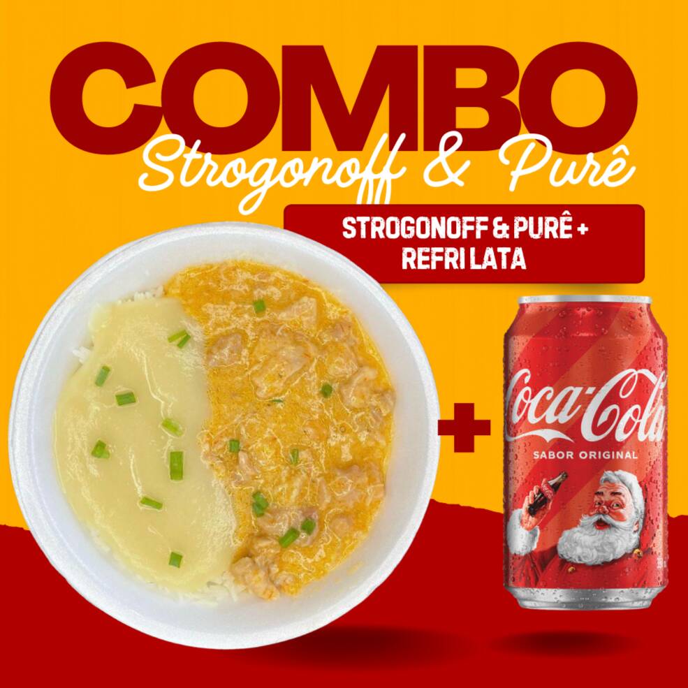 Strogonoff & purê + Refri Lata Grátis