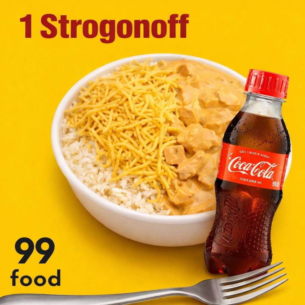 Strogonoff Frango & Fritas + Lata Coca Normal + R$ 14,99 Leve Outra Marmitex