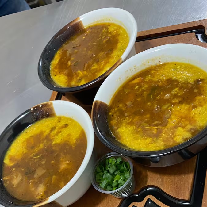 Arroz bem soltinho, Feijao Tropeiro bem recheado Ou De Caldo, tudo com tempero caseiro de verdade, saladinha E um delicioso Pintado Ao Molho, ganhar do prato do Dia da tv Anhanguera.