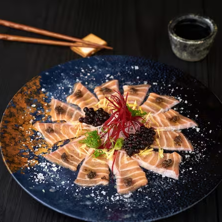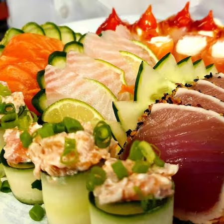 Finíssimas lâminas de peixe coberta por nossos molhos exclusivos!