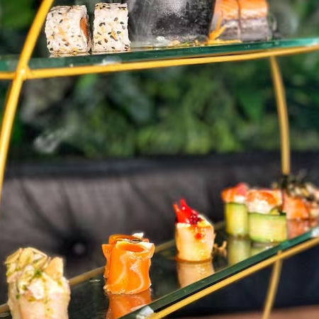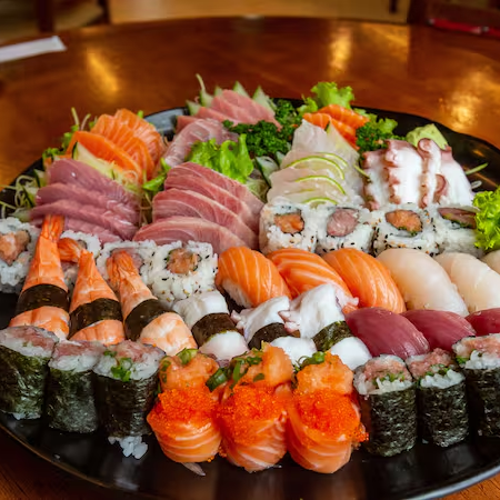 Desfrute de 12 sashimis frescos (6 de salmão e 6 de tilápia com toque de limão), 6 sushis variados com cortes de peixe, 4 niguiris (2 de salmão e 2 de skin especial), 6 gunkans (2 de cream cheese, 2 de tilápia e 2 de shakê) e 12 hot rolls Philadelphia crocantes por fora e cremosos por dentro. Uma seleção completa e irresistível.
