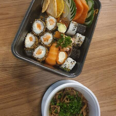 Famoso pediu ficou pronto! Prato mais rápido do ori para você não perder tempo no seu almoço. 1 Temaki de salmão especial + 6 unidades de uramaki patê especial!