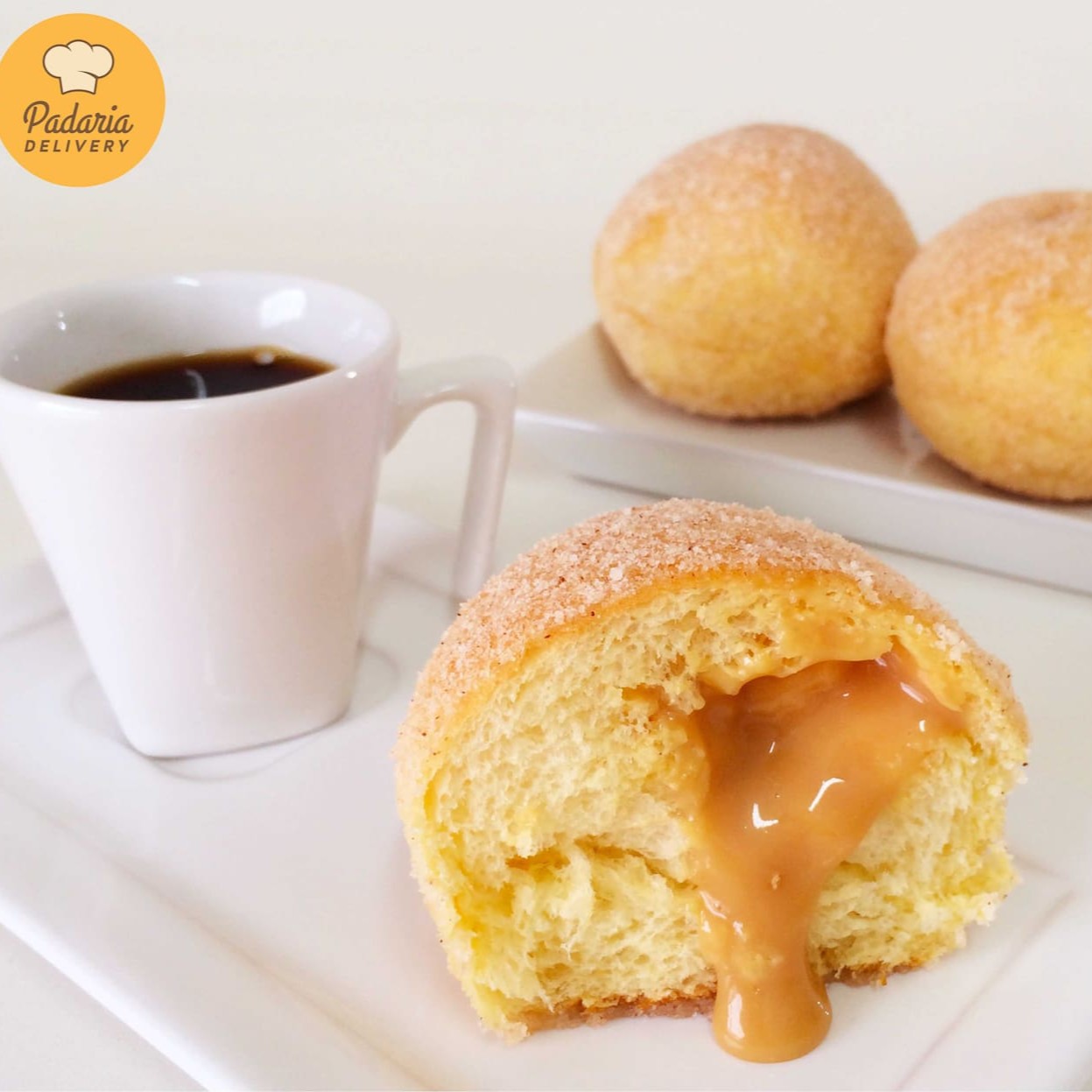 Pão de churros, delicioso macio, com massa artesanal, cobertura de churros e recheio de doce de leite caseiro.