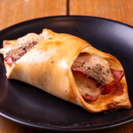 Recheada com frango desfiado, requeijão cremoso e muçarela
