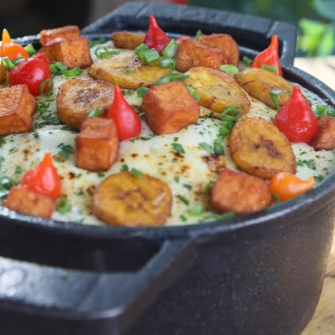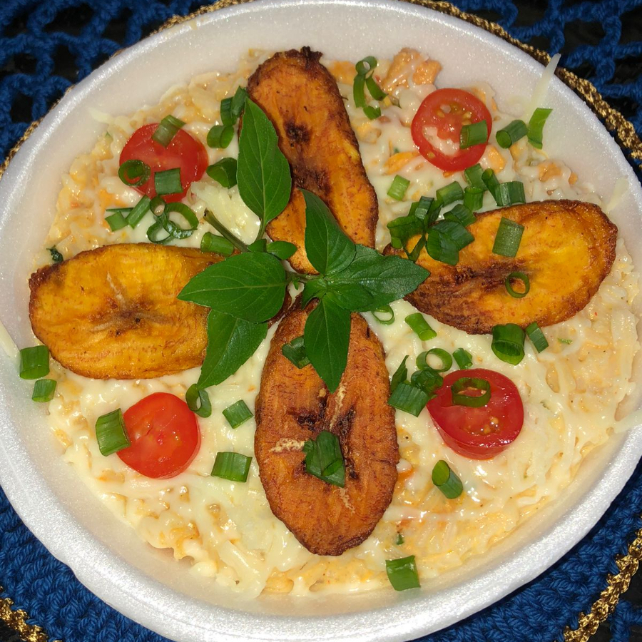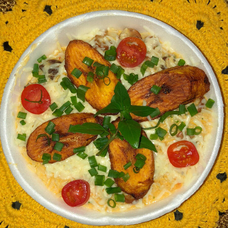Acompanha: arroz, filé de frango, linguiça de frango, requeijão cremoso, queijo, banana frita, tomate e nosso tempero especial da casa.