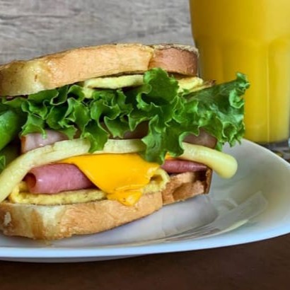 Pão, presunto mussarela, ovo e salada