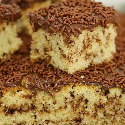 bolo fofinho com cobertura de granulado