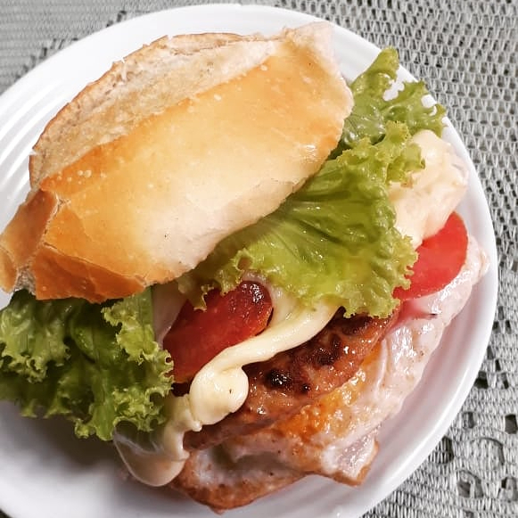 Pão francês fresquinho ,tomate, alface, presunto, queijo ,bacon, e hamburguer ,ovo