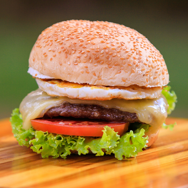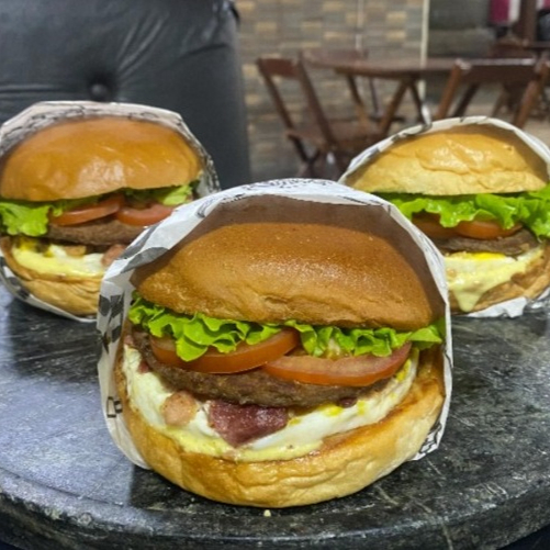 PAO DE HAMBURGUER - HAMBURGUER CASEIRO - PRESUNTO - MUSSARELA - BACON - OVO - TOMATE - ALFACE - MOLHO MAIS 1 600ML