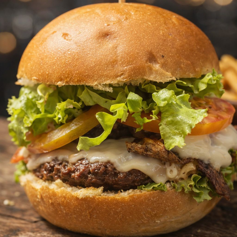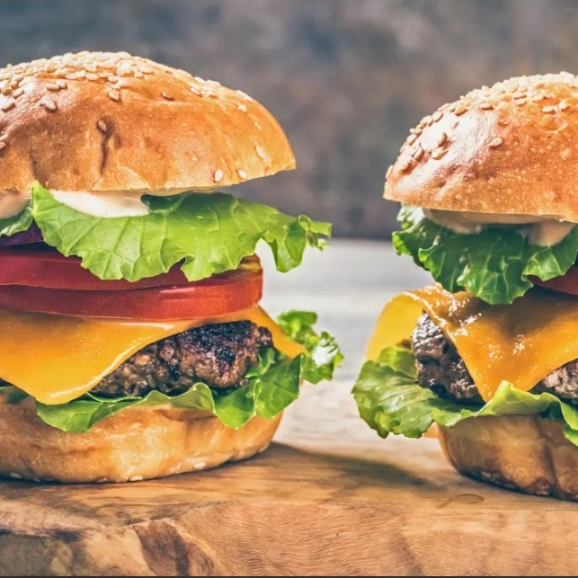 PAO DE HAMBURGUER 2 MUSSARELA 2 HAMBURGUER 100G, TOMATE ALFACE