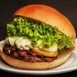 PAO DE HAMBURGUER MUSSARELA HAMBURGUER CASEIRO 100G TOMATE MAIONESE BACON OVO APRESUNTADO ALFACE MAIONESE