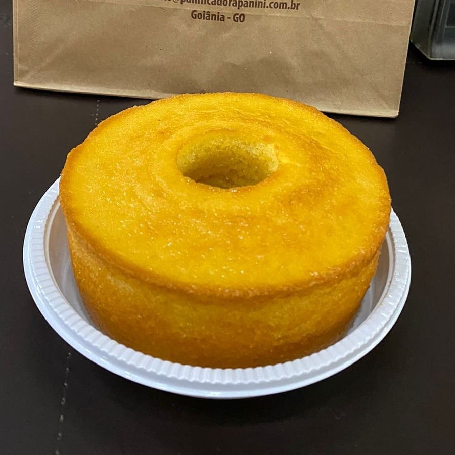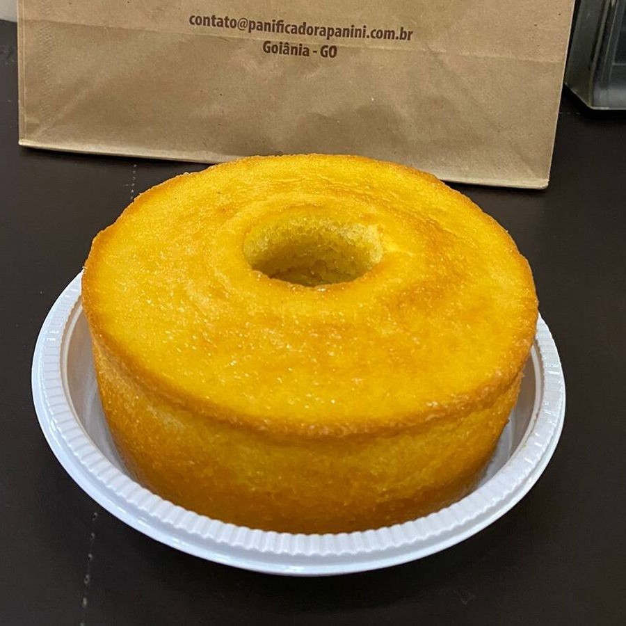 Um delicioso bolo caseiro sem cobertura.