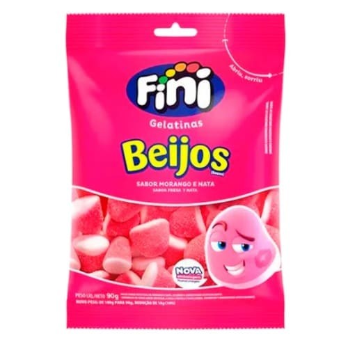Bala De Gelatina Beijos Sabor Morango Fini 90g