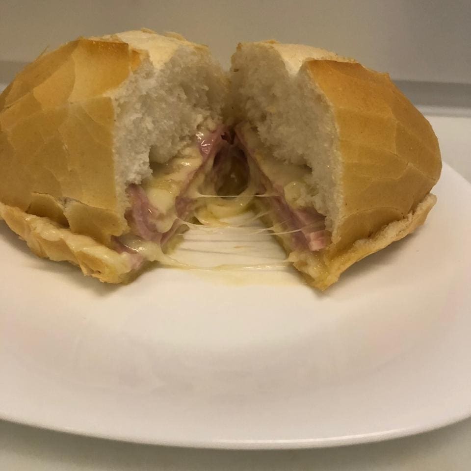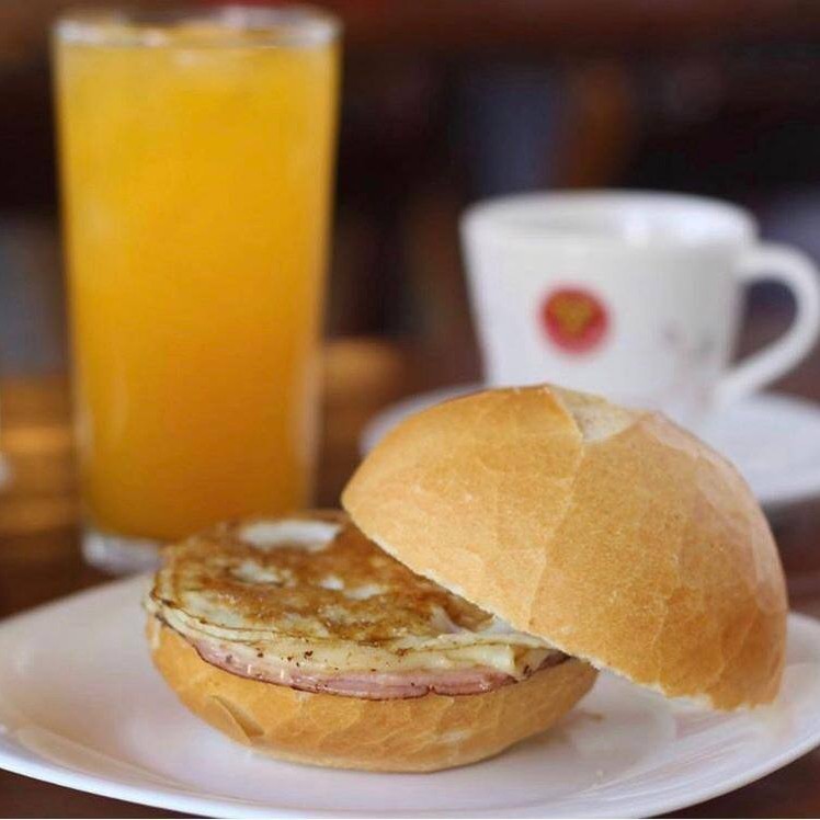 Pão francês , 2 fatias presunto , 2 fatias mussarela e 1 ovo