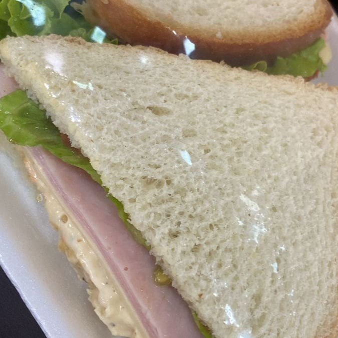 Pão de forma integral ou tradicional, patê de frango , 1 fatias presunto , 1 fatia de mussarela, alface e tomate.