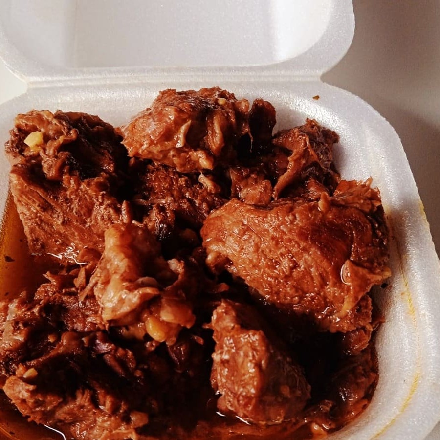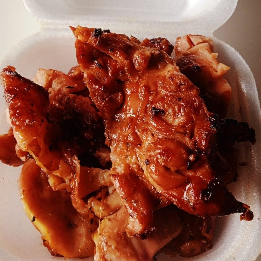 Coxa desossada assada no bafo vem acompanhada de arroz branco, feijão de caldo ,macarrão ,verduras cenoura e batatinha,
