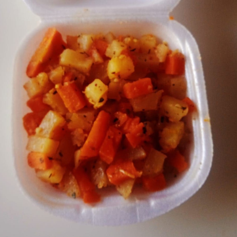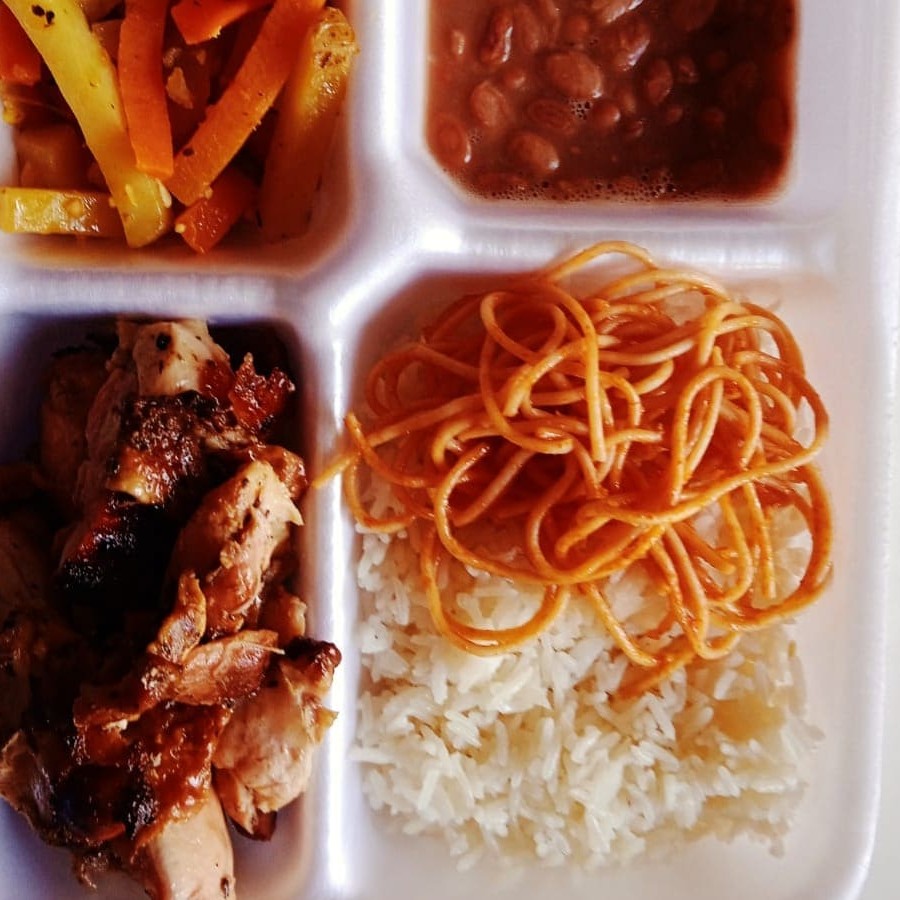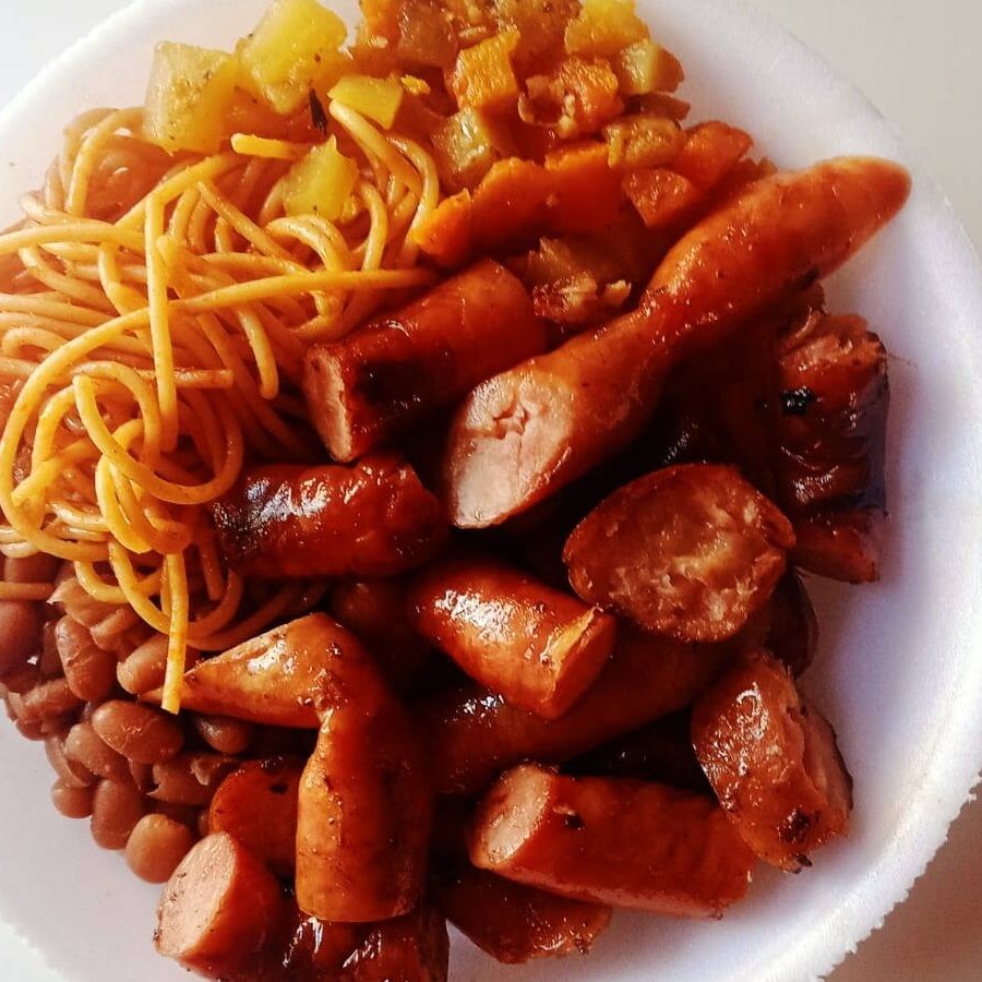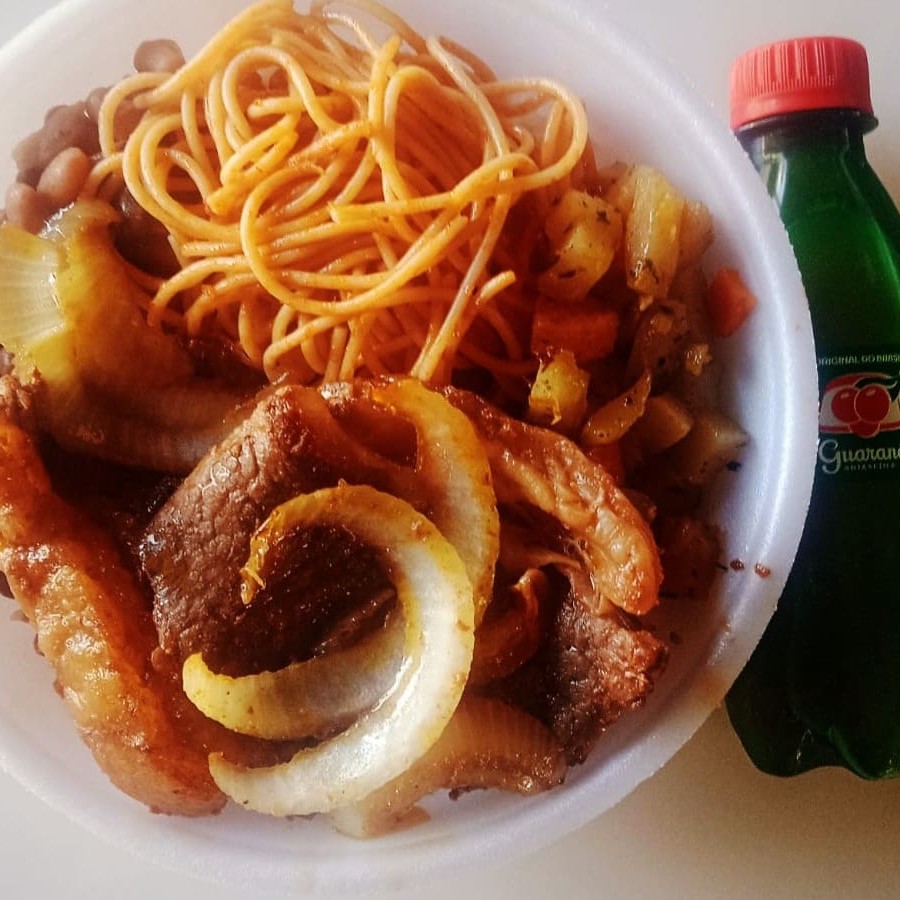 Acompanha arroz branquinho ,feijão de caldo, macarrão ,batatinha e cenoura cozida