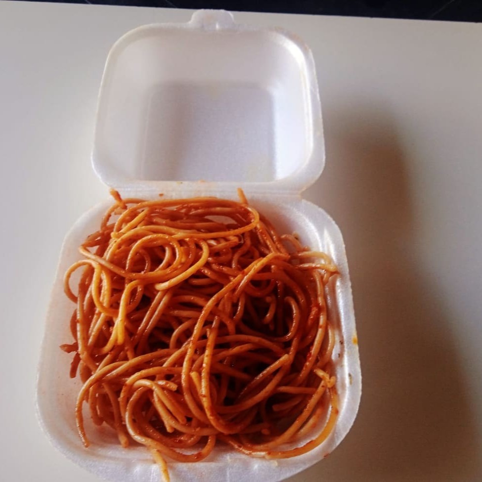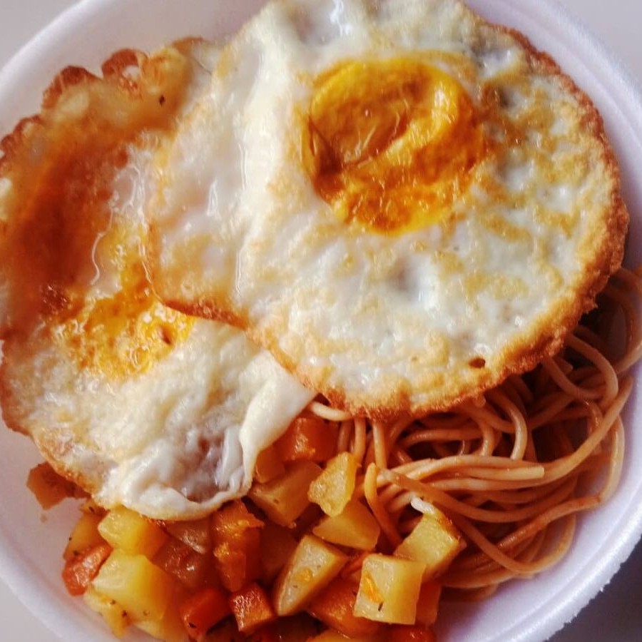 marmitex de ovo frito, vem acompanhado de 2 ovos frito, arroz branco, feijão, macarrão e verduras