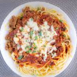Espaguete servido com um delicioso molho à bolonhesa, feito com carne moída e tomate fresco e queijo