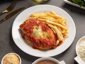 Filé de Frango a Empanado a Parmegiana. Especialidade da casa.