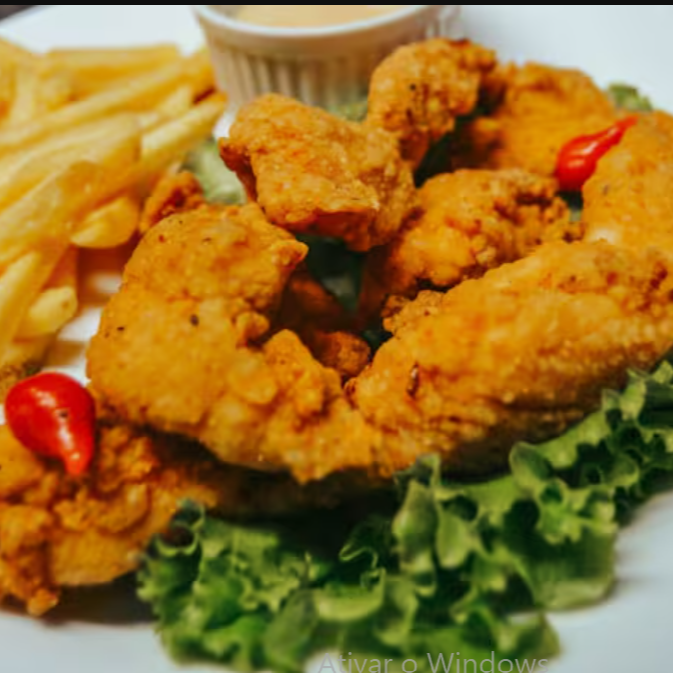 Iscas De Frango Empanado + Arroz + Fritas.