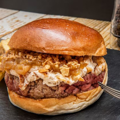Hambúrguer suculento de 150g, servido no pão brioche macio, com queijo muçarela derretido, geleia de abacaxi , molho especial da casa, alface crocante, tomate fresco, bacon crocante, Catupiry e cheddar.