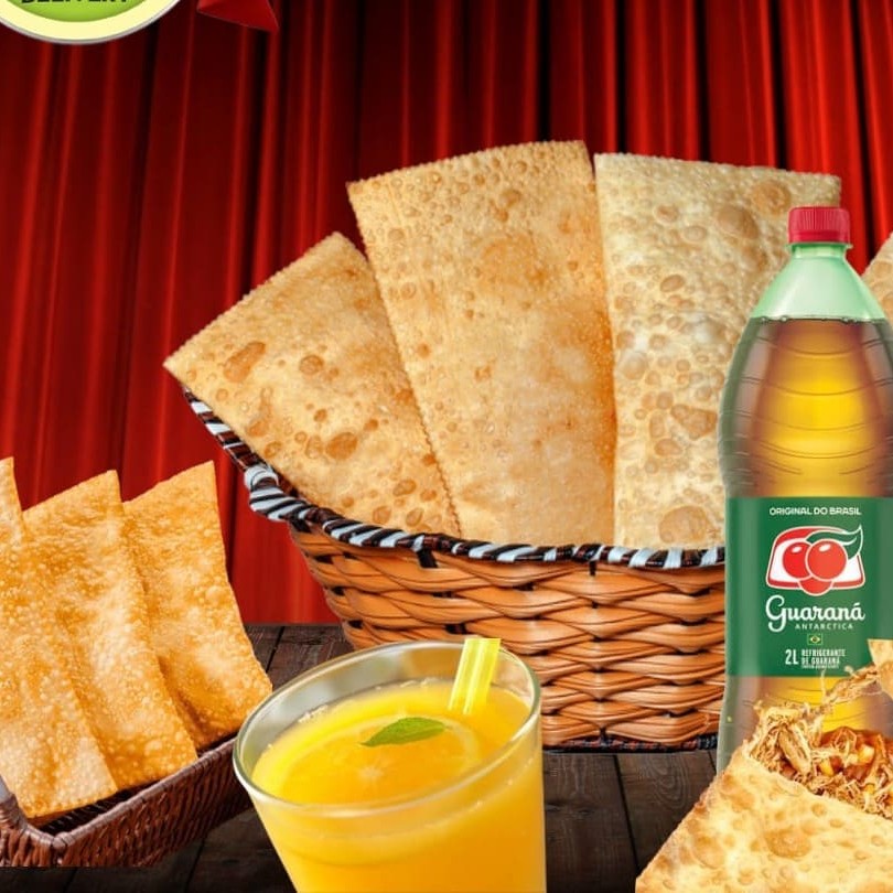 5 pasteis de Carne ou de Frango mais 2 litros de Caldo de Cana