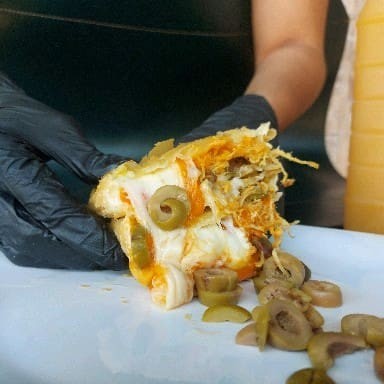 Combinação perfeita! Pastel de Palmito, Azeitona, Milho, Tomate e Orégano.