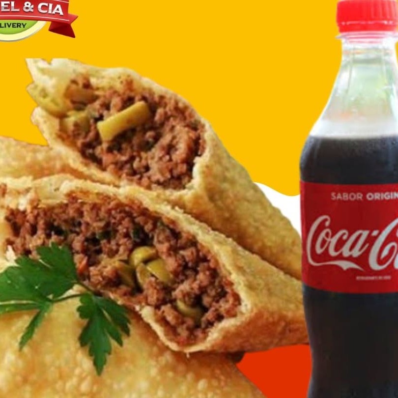 Praticidade é aqui memso! 2 Pasteis de carne ou de frango e uma coca cola 600ml.