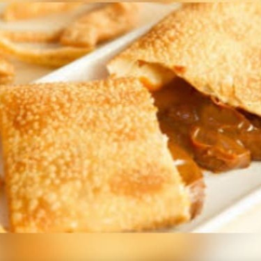 Pastel de Carne de Sol com pimenta calabresa, queijo, tomate e orégano.