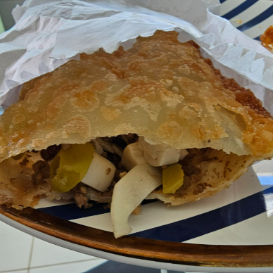 (pastel de churros) doce de leite com a crostinha de canela com açucar