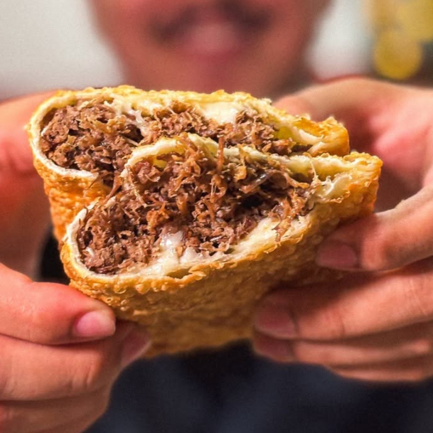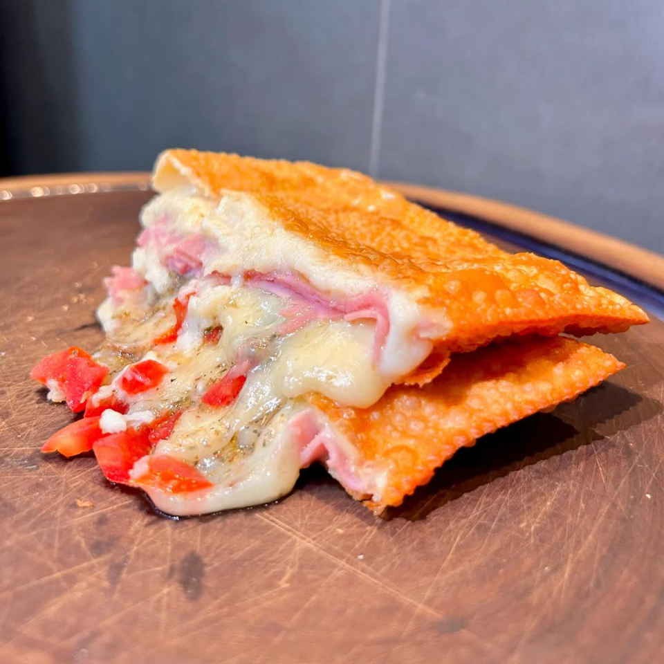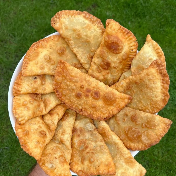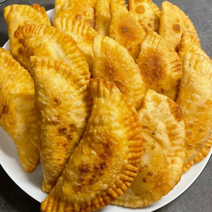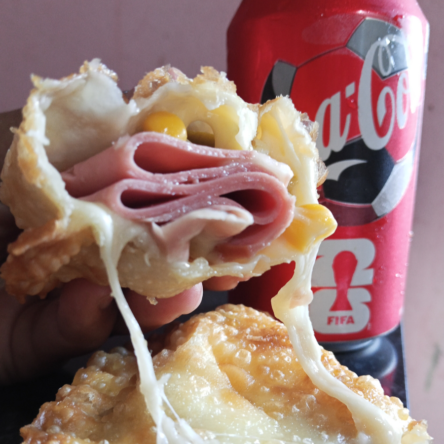 Pasteis meia lua, eles irão com recheio de carne, presunto e queijo, e frango com catupiry.