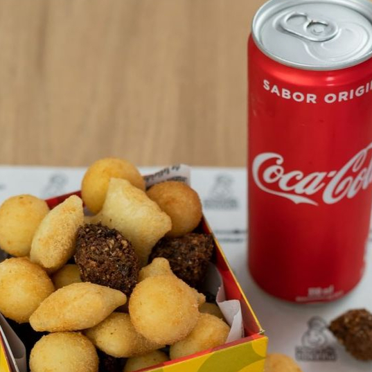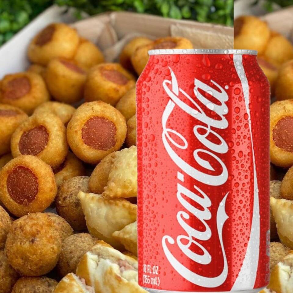 10 Mini Salgadinhos Fritos Na Hora+coca Lata Geladinha