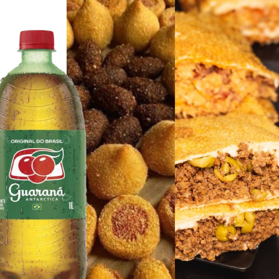 Combo 2 Pastelão Misto(carne Queijo E Presunto Queijo)+10 Mini Salgados Misto+guaraná De 1l Geladinho