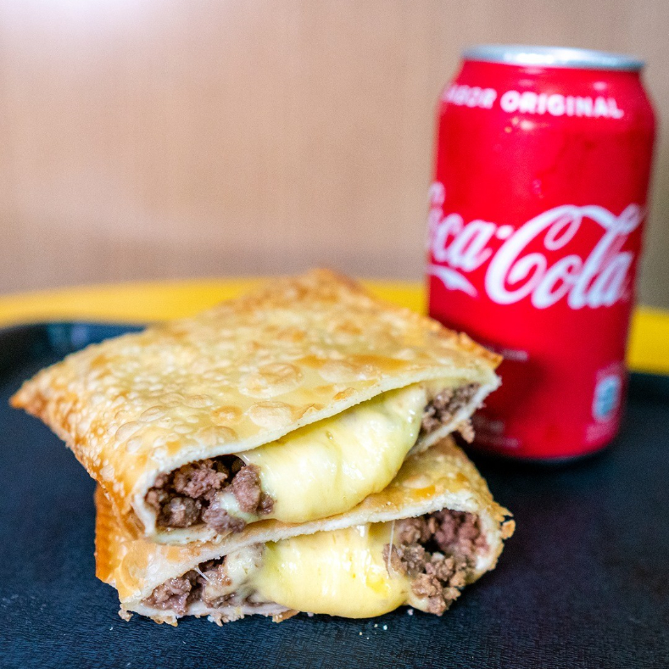 Pastel de Carne e queijo + Coca-Cola Original 350ml.