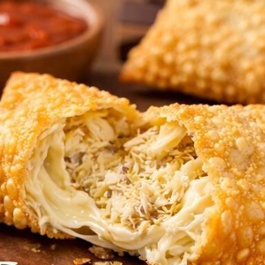 Delicie-se com um pastel recheado de frango suculento, Catupiry cremoso, proporcionando uma explosão de sabores a cada mordida.