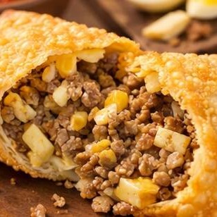 Saboreie o pastel de carne com ovo , uma combinação deliciosa de carne moída, ovo cozido e milho, ideal para um lanche reforçado.