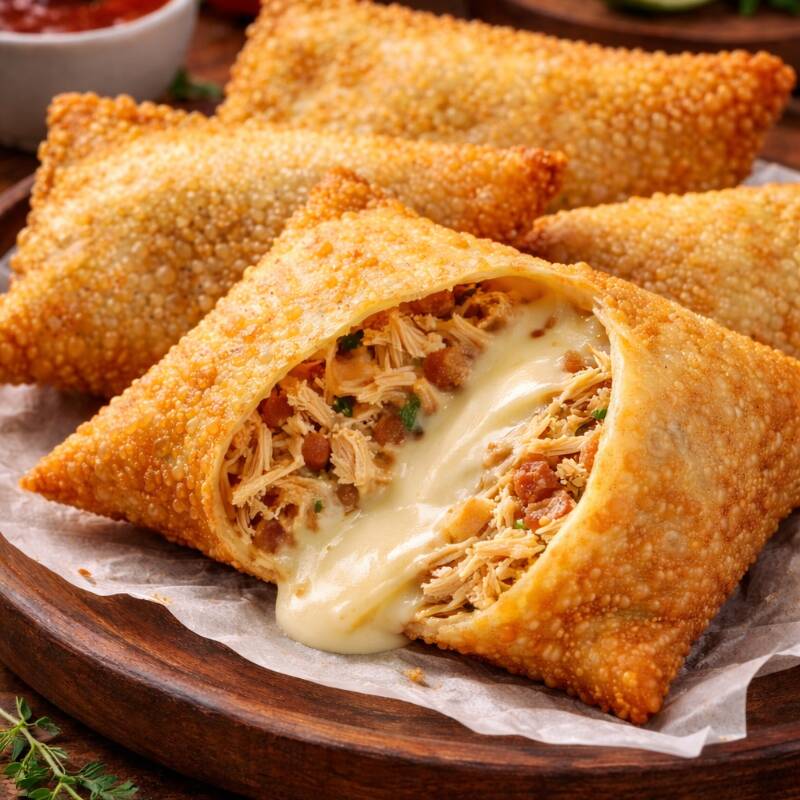 Pastel de Frango com Catupiry Massa crocante recheada com frango desfiado bem temperado e catupiry cremoso. Combinação perfeita!
