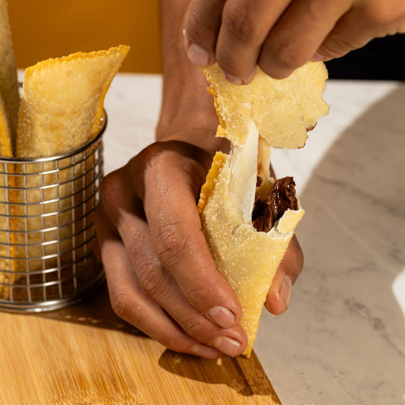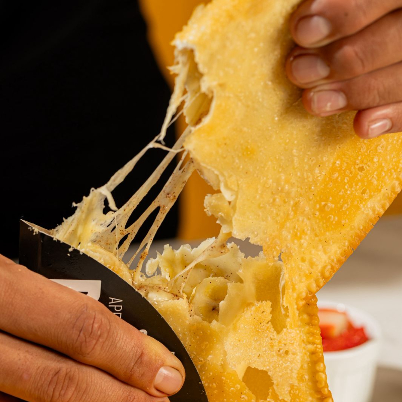 O queridinho, acompanha banana, queijo mussarela, canela e leite condensado para dar aquele tchan no seu pastel!