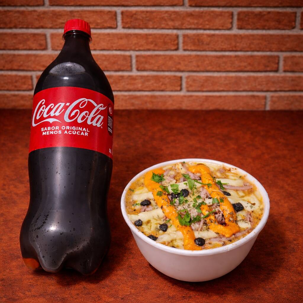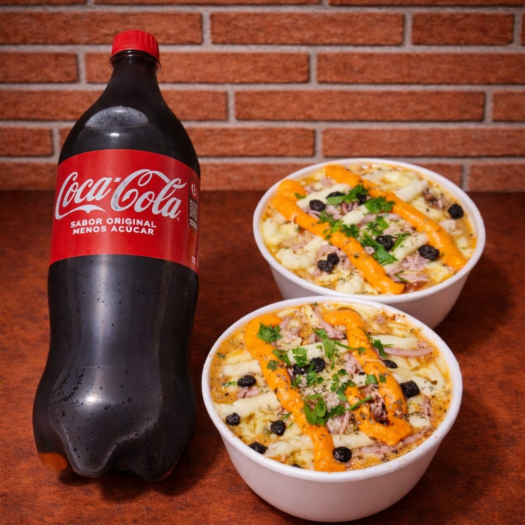 Dois Macarrao Moda Da Casa Mais Coca De 1 Litro