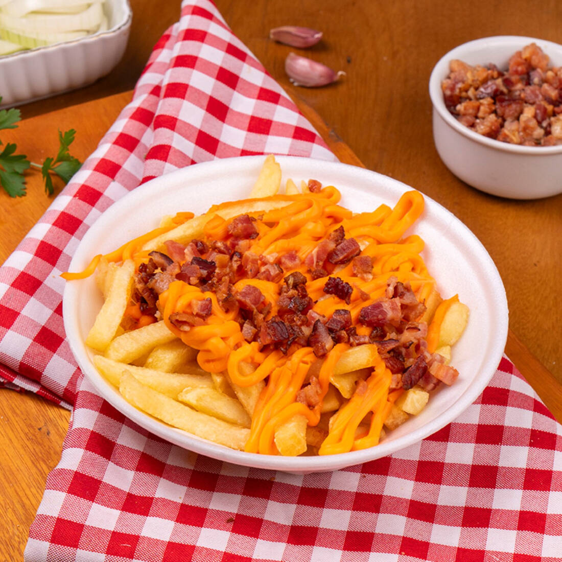 Batata Frita Com Queijo, Cheddar E Bacon