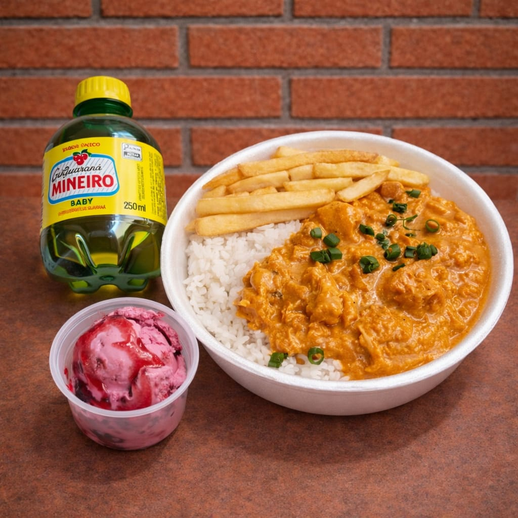 Estrogonofe De Frango Com Batata Frita + Mineiro Baby + Sorvete