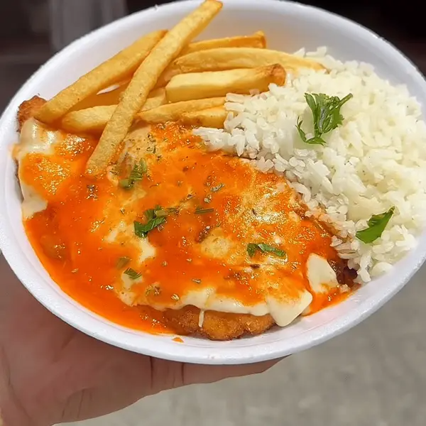 Parmegiana De Frango Com Fritas Arroz