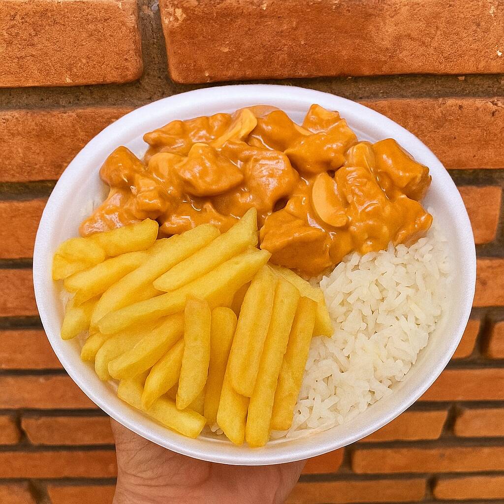 Strogonofe De Frango Com Batata Palha Arroz + Mineiro Baby